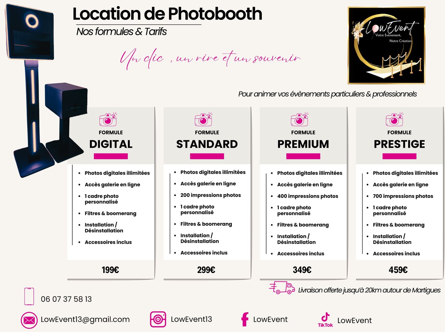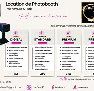 Intuitif, personnalisable et prêt à l’utilisation, notre photobooth s’adapte à tous vos événements : mariages, anniversaires, EVJF, séminaires ou soirées professionnelles dans le 13 et alentours.